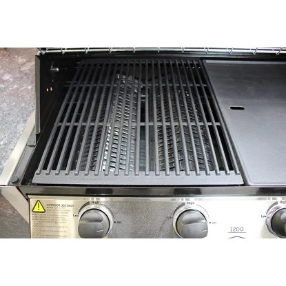 4 Hochleistungsbrenner mit 16 kW/h Gesamtleistung, Grillrost und Grillplatte aus Gusseisen, eine doppelwandige Edelstahl-Garhaube mit Temperaturanzeige und batterielose Quarzündung verbindet optimale Technik mit außergewöhnlichem Design.