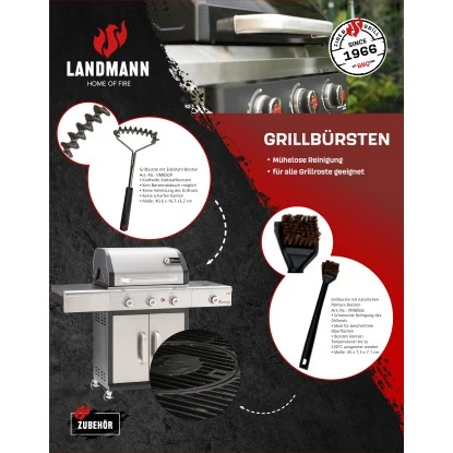 Die Landmann Reinigungsbürste Palmyra mit natürlichen Palmyra Borsten. Damit wird Ihr Grill nach dem Grillen stets sauber.