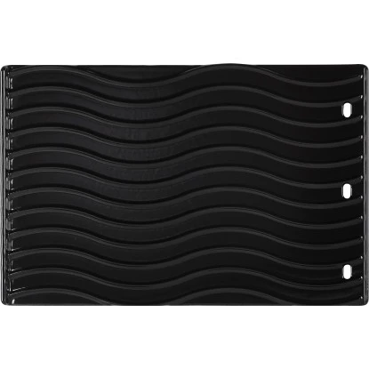 Die Napoleon Gusseisen-Wendeplatte mit einer glatten Seite und einer Seite mit gewelltem Profil. Die neue Porzellan-Emaillierung schützt die Platte vor Korrosion und besitzt dadurch auch eine bessere Antihaft-Beschichtung. Ideal für kleinteiliges Grillgut, Spiegeleier, Burgerparties, Meeresfrüchte etc.