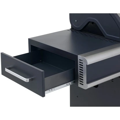 Durch sein elegantes Design im amerikanischen Vintage-Stil ist der Vancouver ein Blickfang auf jedem Grillevent. Das Schmuckstück ist ein wahres Stauraumwunder für alle Grillutensilien, die der Grillmeister benötigt. So lässt sich alles entweder im doppeltürigen Trolley mit Ablageboden oder auch im integrierten Seitenablagen-Fach unterbringen. Der Trolley bietet einen weiteren Clou, nämlich die herausziehbare Gasflaschenhalterung. So lässt sich die Falsche mühelos im Trolley einsetzten und wieder herausnehmen. Egal ob ein direktes oder indirektes Grillverfahren geplant ist, die 4 Brenner sind im Handumdrehen mittels Drehregler eingestellt und die Temperatur kann einfach durch das Deckelthermometer beobachtet werden. Die emaillierten Gruss-Grillroste hinterlassen dabei ein schönes Branding auf dem saftigen Steak und erstrecken sich über eine Grillfläche von ca. 7 cm x 48 cm (LxB). Somit hat man genügend Platz für viele Gäste und unterschiedliche Temperaturzonen innerhalb der Grillfläche können dabei eingestellt werden. Sollte das fertige Grillgut noch keinen Abnehmer gefunden haben, lässt es sich auf der oberen Ebene ideal warmhalten.