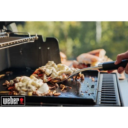 Die hochwertige, extragroße Weber Crafted Grillplatte/Plancha (Maße: 40 cm x 41 cm) aus porzellanemailliertem Gusseisen sorgt dank optimaler Wärmespeicherung dafür, dass Ihr Grillgut schonend gegart wird. Die flache, leicht geneigte Oberfläche sorgt für einen Fettablauf schräg nach hinten, während der geriffelte Rand Öl und Gewürze auf der Grillplatte hält. Nach Gebrauch lässt sie sich zudem schnell und einfach reinigen.